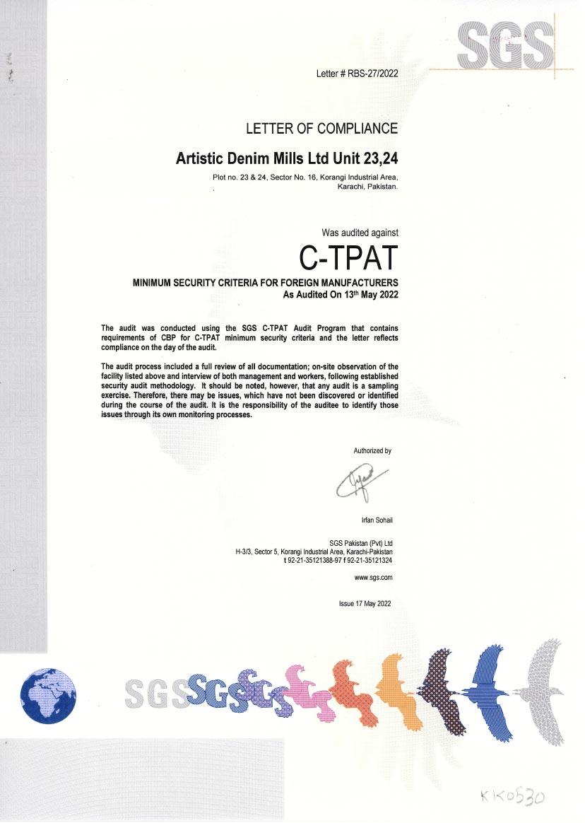 ✔ C-TPAT - Customs-Trade Partnership Against Terrorism